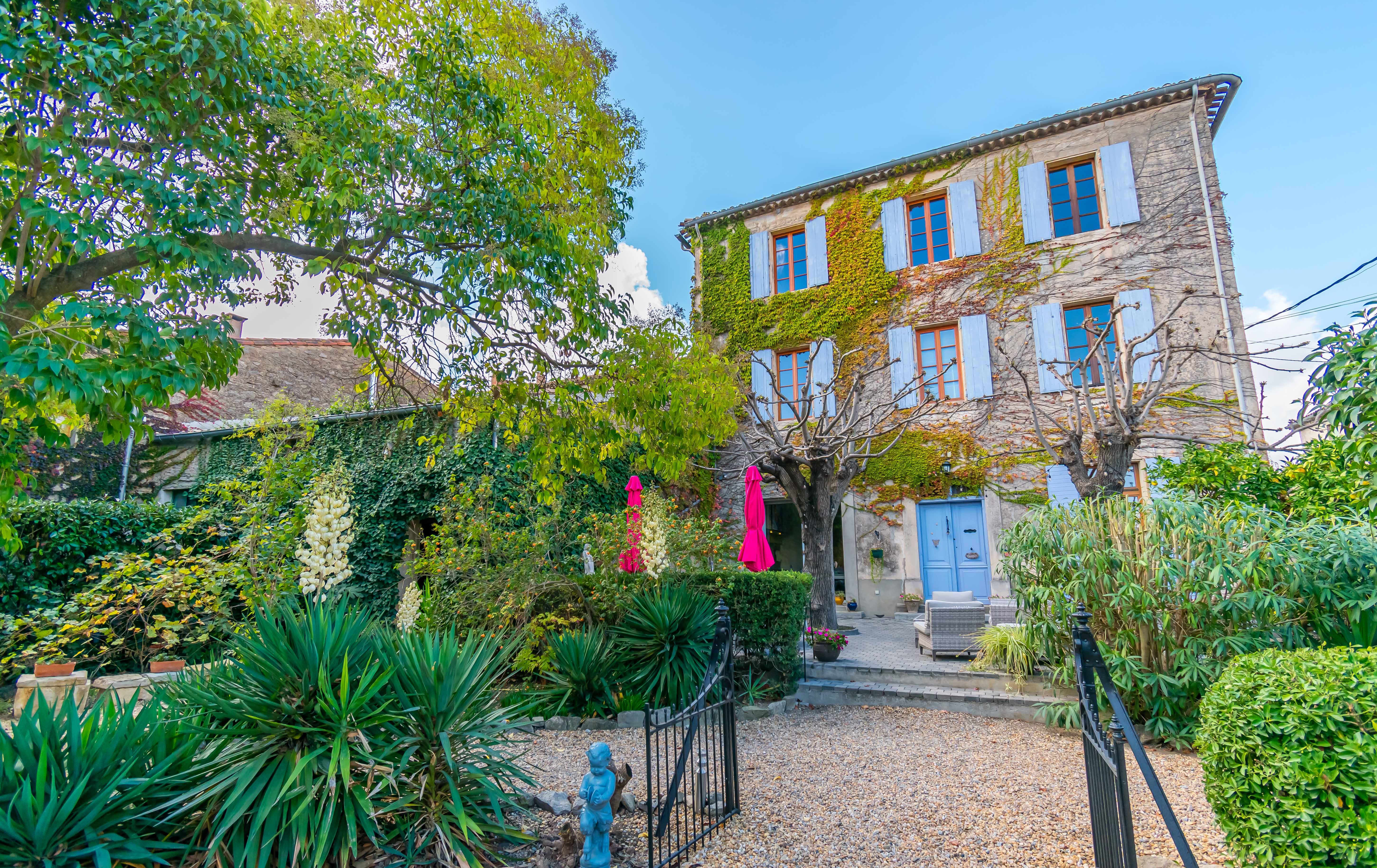 A warm Mediterranean welcome awaits you at our quality chambres d'hôtes in Olonzac, a 19th century Maison de Maître and a fine example of a bourgeoisie residence originally built for the Eloi family, once an important winemaker in the area. With its elegant volumes, architectural detailing and wonderful private gardens, you’ll enjoy your holiday in the tranquillity and grandeur of the old house and gardens, yet right in the heart of the town. With a choice of rooms in the house or separate self-catering gîtes in the landscaped grounds with private swimming pool, it's a peaceful place and an excellent base to explore the unspoiled beauty of the area. There's so much to explore in the Occitanie [Languedoc-Rousillon] region with the Canal du Midi on your doorstep and beaches of the Mediterranean within easy reach by car. Contact us now for availability.