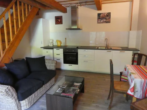 Gite Thym is accessed through the garden and has an outside seating area overlooking the garden with access to a shared BBQ. On the ground floor you will find a fully equipped fitted kitchen with oven/grill, gas hob, dishwasher, microwave, fridge with ice box, kettle and coffee percolator. Inside dining area, seating area with satellite TV offering both French and UK free view channels. On the first floor there is a bedroom with large double bed (160cm). Bathroom with power shower wash basin and toilet.